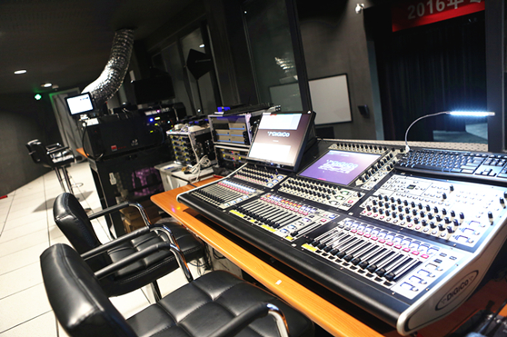 步入圆形剧场,炫彩夺目的舞台、宽敞舒适的座椅、大型的LED电子显示屏等等,从整体到细节,圆形剧场带给人的第一感觉就是专业化和现代化。据剧场工作人员介绍,剧场总面积780余平方米,舞台长15米,宽12米,可同时容纳201人观看演出。音响系统采用了美国DIGICO调音台、法国LA扩声系统及德国森海塞尔麦克,此套系统目前在国内居于领先水平,《中国好声音》《我是歌手》等电视节目均采用此系统;调光台使用的是世界主流的英国TIGER TOUCH 2代;舞台机械采用变频系统,起到了缓升缓降从而保护灯光和工作人员人身安全的作用;另外剧场设有80盏LED四色聚光灯、60盏成像灯、48盏LED天地排灯及16台电脑图案切片灯;电影系统与市面电影院为同一系统,可以与院线进行直接对接,此前校友郭婷婷出品的电影《半熟少女》点映会就在此举行。这些高端的设备保障了剧场在舞台布景、灯光、声效、视角等专业化方面都有较高水平,可完成不同需求的演出任务。