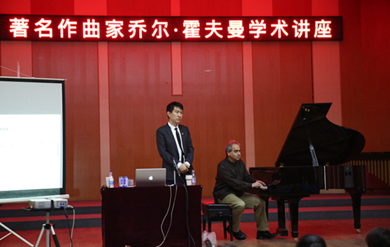 4月15日下午,美国著名钢琴家、作曲家乔尔·霍夫曼应邀在我校文东校区演播厅开展了主题为“关于作曲艺术的新思路”的学术讲座,音乐学院部分师生和社会音乐爱好者参加了这次讲座。
