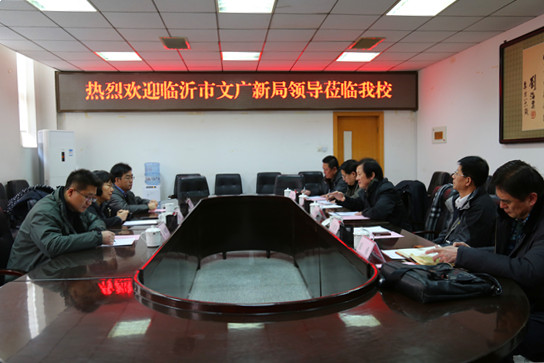 1月29日,临沂市文化广电新闻出版局党委书记、局长曹首娟、副局长张建华一行来我校调研洽谈合作事宜。座谈会在文东校区综合楼二楼会议室召开。山东艺术学院副院长高启光参加座谈会。