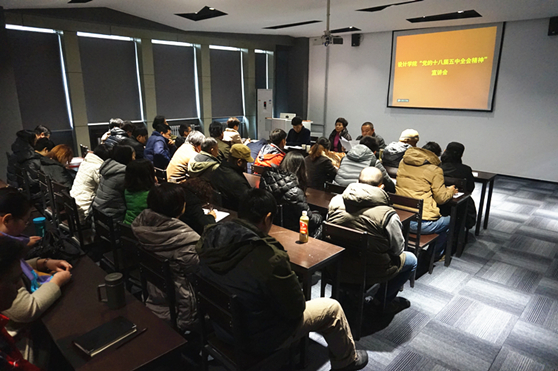 11月23日下午,设计学院贯彻落实党的十八届五中全会精神宣讲会在长清校区设计学院教学楼A204教室召开。设计学院党总支书记王大海作专题宣讲,学校党委组织部部长邹坤萍、设计学院全体教师和学生代表参加了宣讲会。宣讲会由设计学院院长荆雷主持。