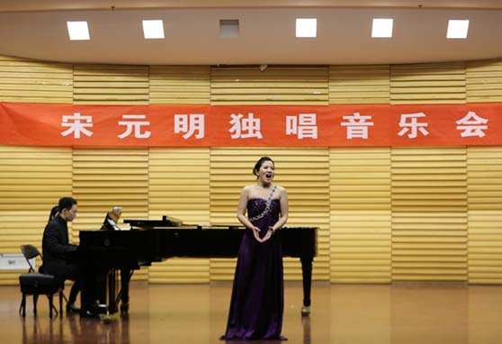 11月24日晚,山东艺术学院音乐学院青年教师、女高音歌唱家宋元明教授独唱音乐会在文东校区艺术剧场一楼音乐厅上演。演出特邀年轻钢琴家、指挥家张橹担任钢琴艺术指导。山东省文联副主席、山东省音乐家协会主席张桂林、山东艺术学院党委书记李宗伟及音乐学院相关领导与广大师生一起观看了音乐会。