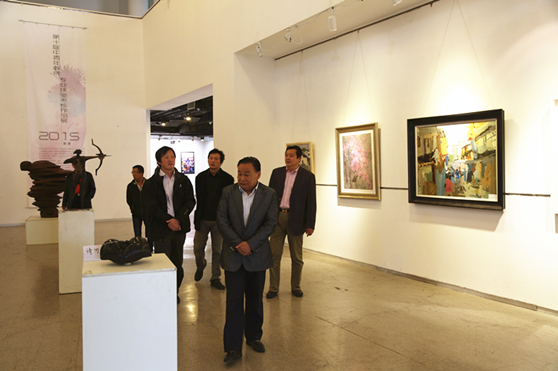 10月27日至29日,我校第六届“艺苑金秋”艺术节暨第十届中青年教师专业技能考核作品展在长清校区美术馆举行。校党委书记李宗伟、院长张志民、副院长刘大力、副院长高启光、纪委书记兰绍彤到现场观看展览并指导工作。