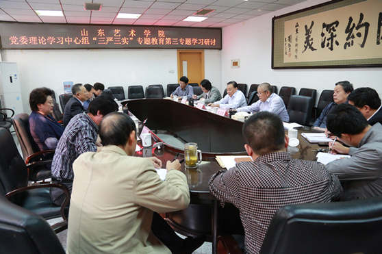 10月21日下午,山东艺术学院党委理论中心组在文东校区综合楼二楼会议室召开“三严三实”专题教育第三专题“严以用权”学习研讨会。省委高校工委机关党委调研员张广尧,学校党委书记李宗伟,党委副书记、院长张志民,党委副书记王力克,党委委员、副院长刘大力,副院长刘晓静,党委委员、副院长高启光,党委委员、纪委书记兰绍彤参加学习。会议由李宗伟主持。