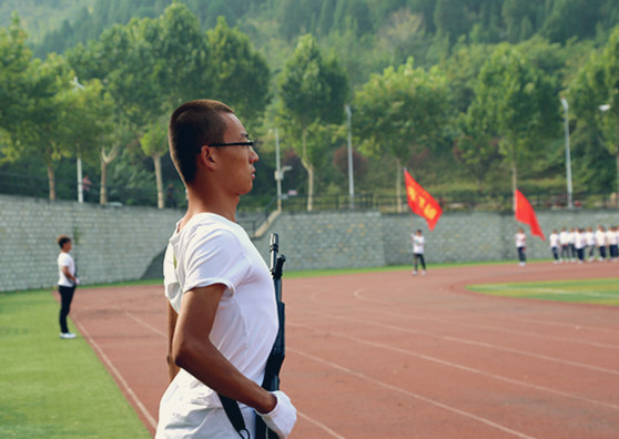 同学们整装列队,等待检阅