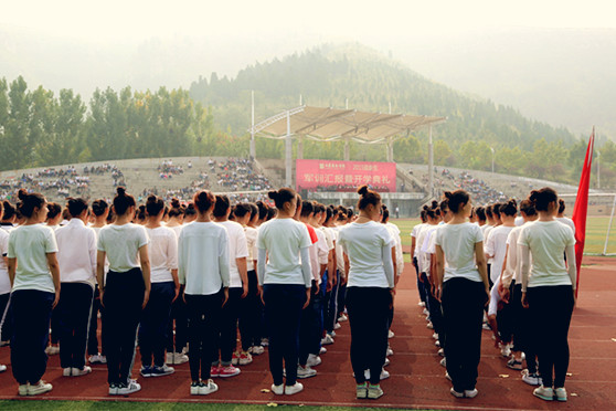 典礼在隆重的升国旗、唱国歌仪式中拉开帷幕。院长张志民在学生处负责人和军训教官的陪同下依次检阅了受训方队。随后,身着便装的2658名新生组成的24个方阵依次通过主席台进行分列式表演及精彩的军训课目汇报表演。同学们整齐的步伐、嘹亮的口号、饱满的热情、高昂的气势、威武的军姿,展示了良好的军训成果与精神面貌,博得在场领导和观众的热烈掌声。