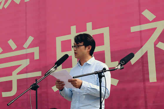 教师代表邵巍巍、新生代表郝倩倩分别在开学典礼上发言。