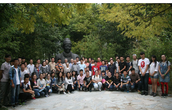 张志民与柳咏絮为铜像揭幕,校领导与柳子谷家属及参加活动的师生合影留念。