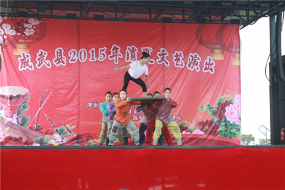 7月12日下午,社会实践团一行奔赴成武县,在文亭湖公园与成武县文化局联合举办了2015年消夏文艺演出,社会实践团的大学生们与当地的艺术工作者合力为到场观众献上了一台精彩的视听觉文化盛宴。成武县委副书记、县长耿振华,省派成武挂职县委副书记山东艺术学院研究生处长苏茂兴,成武县委常委、组织部长孙迁国,副县长李璐璐及我校党委组织部负责人、舞蹈学院党总支负责人、校团委、艺术实践与创作处相关负责人观看了演出。