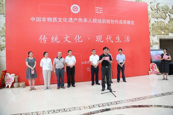 8月6日上午,山东艺术学院在山东省文化馆举行“非物质文化遗产传承人群培训班创作成果展”开幕式。山艺副院长高启光、山东省文化厅非遗处主任科员蒋士秋、学校宣传部、艺术实践与创作处等有关职能部门及艺术管理学院负责人、部分教师及教学管理人员、非遗培训班的全体学员、长期关心非物质文化遗产发展的社会人士等参加了展览开幕仪式。