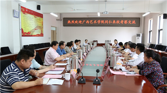 邓军介绍了广西艺术学院的基本情况和当前学校发展状况,并阐明了此次来访交流的主要考察内容。他讲到,山东艺术学院作为省属综合性艺术院校,同广西艺术院校都是文化部与省、自治区共建高校,在长期的办学实践中取得了很好的办学成绩,积累了丰富的办学经验,希望加强兄弟院校之间的交流,取长补短、共同提高。