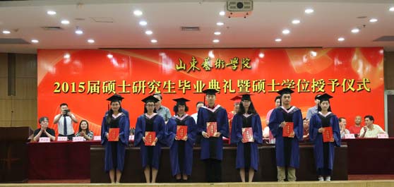 6月12日上午,山东艺术学院2015届硕士研究生毕业典礼暨硕士学位授予仪式在长清校区图书馆报告厅举行。校党委书记李宗伟,院长张志民,副院长刘大力、刘晓静、高启光,纪委书记兰绍彤出席典礼。典礼由刘晓静主持。