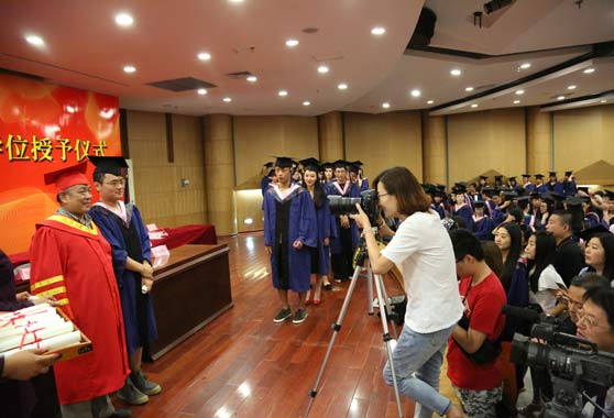 典礼上,张志民一一向获得硕士学位的毕业生们颁发了硕士学位授予状。