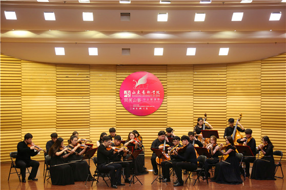 6月15日晚,山东艺术学院2017首届毕业展演季“闳美山艺”系列活动之山东青年弦乐团室内专场音乐会在文东校区综合楼一楼音乐厅举行。山东省文化厅副巡视员刘敏、山东艺术学院院长王力克、纪委书记兰绍彤等领导出席和师生一同观看了演出。