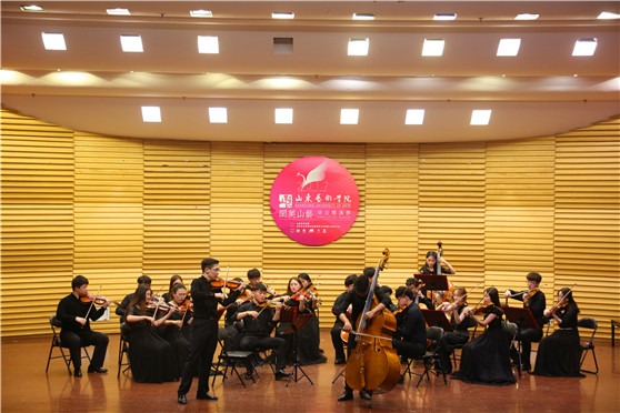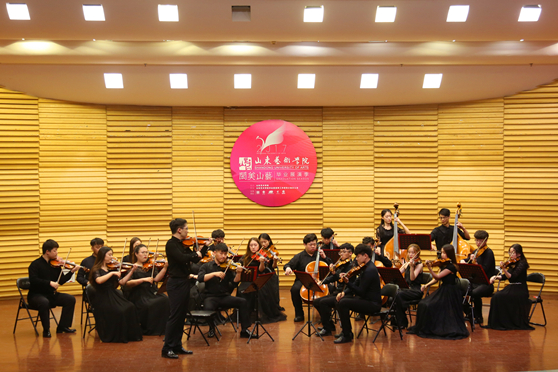 本次演出是室内乐专场音乐会。室内乐音乐会代表着器乐演奏艺术的最高层次,也是交响乐的根基。室内乐既是管弦专业学生重要的基础课程,也是通向更高艺术境界的必经之路。本次音乐会由山东青年弦乐团的学生团队呈现。演出以《D大调嬉游曲》精彩拉开序幕。在上半场演出中,弦乐团倾情演奏了《四季之春》《查尔达什舞曲》等曲目。在下半场的演出中,乐团演奏了《小白菜》《茉莉花》《杨柳青》《猜调》《走西口》以及《二泉映月》《愿亲人早日养好伤》《瑶族舞曲》等经典的中国民族乐曲。这种创造性的加入了炎黄风情中国民歌主题弦乐,带给观众焕然一新的视听感受。“西乐中用”成为本场演出的亮点,现场演奏者和观众融为一体,气氛空前热烈。整场演出各个声部配合默契,演奏中大段的拨奏、持续的泛音让观众们领略到了山东青年弦乐团的风采,赢得了全场观众的阵阵喝彩。在持续不断的欢呼声中,乐团为观众们加演了莫扎特的《戏游曲》和《匈牙利舞曲第五号》,在优雅的旋律中结束了此次演出。