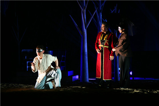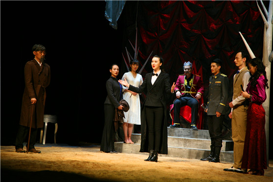 《李尔王》改编自莎士比亚的经典同名话剧剧本,由戏剧影视学院的陈水清老师带领2013级表演班毕业生创作。此次演出是在以往几个阶段演出的基础上经过创作团队反复揣摩、不断提高的结果。呈现的演出从故事结构、主题阐释、表演创作、舞美制作、服装设计、化妆造型等都颠覆了传统莎士比亚戏剧作品的创作演出风格。故事结构上采用一条主线多条复线,并运用电影中的非线剪辑的讲述故事方法,让观众随时保持冷静的思考,既被紧张的故事情节吸引又需要不断的思考故事的拼接点、主题立意。舞美制作中采用简单、意象的制作原则。服装设计、化妆造型上摒弃了一味地还原莎翁时代的设计理念,采用现当代的审美元素,更多地符合现代年轻人的审美、兴趣点。将莎士比亚经典剧目的主题“心中富有,真诚无私更为重要;人性的贪婪,极端的利己主义常常造成了亲情的失落”精彩呈现。
