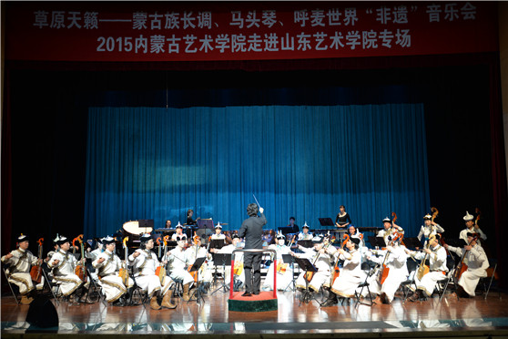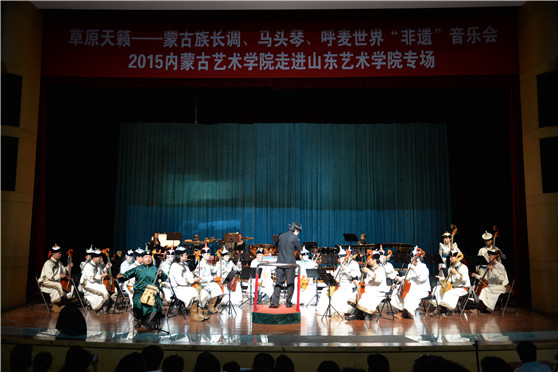 本场演出是内蒙古艺术学院“草原天籁”——蒙古族长调、马头琴、呼麦世界“非遗”专场音乐会巡演的首场演出,进一步加强了我校与内蒙古艺术学院两校之间艺术教育互动,促进了文化实践交流工作,增进了师生们彼此的友谊,激发了广大师生们学习研究中华民族文化艺术的积极性与热情。