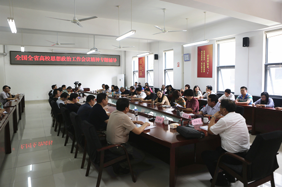 刘欣堂结合国际、国内和教育改革发展新形势,分三大部分,紧紧围绕全国全省高校思想政治工作会议的重要意义,扎根中国大地办大学,正确认识把握高等教育坚持正确发展方向和高校思想政治工作的主要任务,创新大学生思想政治教育、加强思政工作队伍建设、加强高校党的领导等,对全国全省高校思想政治工作会议精神进行了系统细致解读,并就高校思政工作如何贯彻落实五大发展理念进行了深入阐述。与会人员听取报告后深受教育和启发。大家说,这是一次站位高、思考深、接地气、针对性强、情理交融的辅导报告,进一步理解和明确了加强和改进学校思想政治工作的为什么、做什么、怎么做、谁来做等重要问题,对于指导我们深入学习贯彻习近平总书记系列重要讲话精神,深入学习领会和贯彻落实全国全省高校思想政治工作会议精神,深入推进 “两学一做”常态化制度化,都具有重要作用。