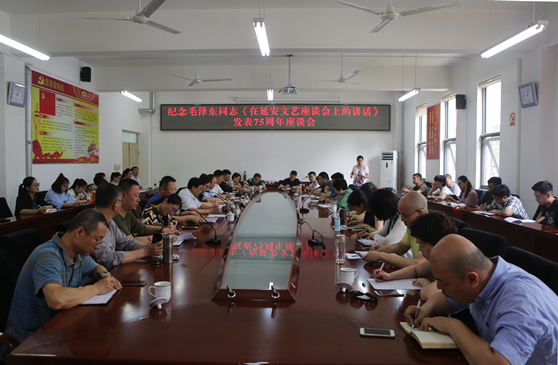 5月22日上午,山东艺术学院纪念毛泽东同志《在延安文艺座谈会上的讲话》发表75周年座谈会在长清校区办公楼二楼会议室召开。院长王力克、党委副书记孔祥华、纪委书记兰绍彤出席座谈会。座谈会由孔祥华主持。