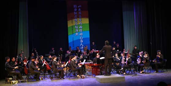 4月28日下午,由山东省文化厅、山东艺术学院主办的“2016年山东省青年戏曲作曲后备人才培训班”结业仪式暨汇报演出在山东艺术学院长清校区圆形剧场举行。山东省文化厅艺术处处长张东林,山东艺术学院纪委书记兰绍彤,著名戏曲音乐家、授课专家栾胜利、高鼎铸出席仪式。仪式由山东艺术学院戏曲学院院长王文清主持。