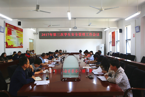 5月9日上午,我校在长清校区办公楼二楼会议室召开本年度第三次学生安全管理工作会议。会议强调,安全稳定工作无小事,要从讲政治讲大局的高度,充分认识做好学校安全稳定的极端重要性,坚持一天也不放松学生安全管理工作,确保学生安全、校园和谐,以优异成绩迎接党的十九大和我省第十一次党代会胜利召开。