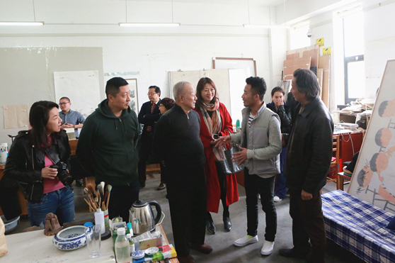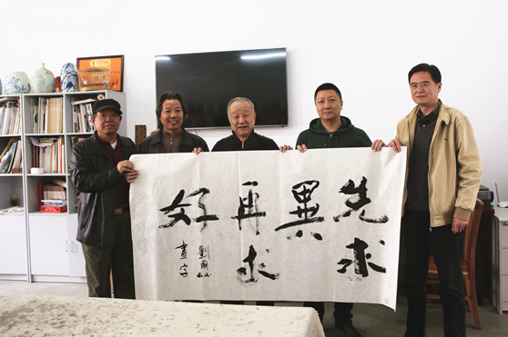 4月10日,我校客座教授、现代水墨艺术家刘国松先生,山东省博物馆副馆长卢朝辉等一行5人来学校访问,院长王力克热情接待。