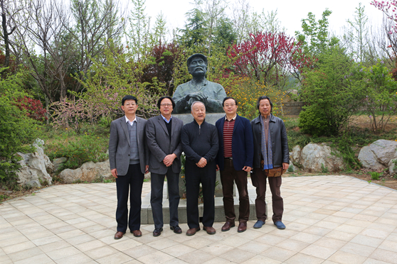 在图书馆,刘国松先生一行参观了校史馆、汉画像石馆和于希宁纪念馆,并欣然题字。他兴致勃勃的了解我校历史沿革、发展现状,观看了汉画像石的精美馆藏和于希宁先生捐赠学校的绘画作品。随后,一行人来到梅园,瞻仰了于希宁先生塑像,并合影留念。