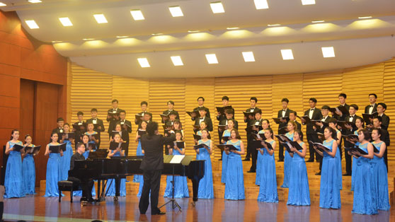 5月6日晚,美国杨百翰大学合唱团与山东艺术学院音乐教育学院合唱团“中美合唱交流音乐会”在山艺文东校区综合楼音乐厅激情上演。