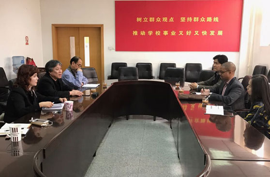 4月12日,美国弗吉尼亚州联邦大学音乐学院院长Darryl Harper 与钢琴系主任郑吟博士来我校访问。在文东校区综合楼二楼会议室举行了两校交流座谈会,并与音乐学院和设计学院进行了交流。