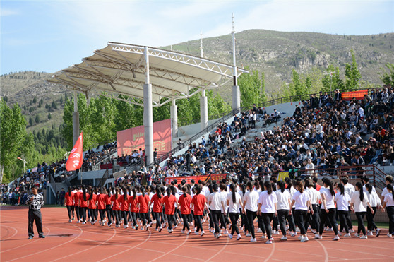 孔祥华致开幕词。他指出,健康的体魄是一个人更好工作、学习的前提条件。体健才能更好地担当重任,才能作出更多更大的贡献。培养德智体美全面发展的社会主义事业建设者和接班人,是党和国家教育方针的根本要求,是高等教育崇高的历史使命。体育是学校教育的重要组成部分,是素质教育的重要内容。组织开展丰富多彩的体育运动、竞赛活动,强化体育课和课外锻炼,对于增强师生体质,促进师生身心健康,带动精神文明建设,提升学校凝聚力,推进学校事业发展,都具有重要意义。他强调,多年来,学校高度重视并积极发展体育运动事业,抓体育设施建设,抓体育课教学,抓群众性体育活动,持续开展“走下网络,走出宿舍,走向操场”主题群众性课外体育锻炼,形成了以教学为中心,以运动会为龙头,以各类各层次比赛为主体,以广大师生积极参与为基础的良好体育教学教育机制。学校坚持举办田径运动会,至今已坚持了37届。举办大型田径运动会,既展示师生勇于拼搏、争先创优的精神面貌,又促进各方面之间的沟通交流,带动群众性体育运动的广泛开展。实践证明,运动会已经成为学校增进师生健康,丰富校园文化,凝聚向心力,传播正能量的重要载体和窗口。他希望,全体运动员发扬“更高、更快、更强”的奥林匹克精神,赛出成绩、赛出水平、赛出风格、赛出友谊;全体裁判员、工作人员公平公正,认真履职、周到服务,保障赛会顺利进行;全体观众文明观赛、热情助赛,为运动员呐喊助威、鼓劲加油;通过我们共同努力,在一流的田径赛场展示山艺人一流的风采风貌,创造更加优异的运动成绩和精神文明成绩。
