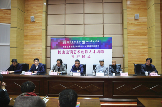 4月9日,国家艺术基金2016年度人才培养资助——博山琉璃艺术创作人才培养项目开班仪式在山东艺术学院长清校区学术报告厅举行。山东省文化厅副厅长张桂林,山东省教育厅体育卫生与艺术教育处处长孙乐为,项目合作方代表、博山陶瓷琉璃行业办公室主任乔琳,特邀授课专家、清华大学何洁教授、白明副教授,山东艺术学院院长王力克、副院长高启光出席开班仪式。