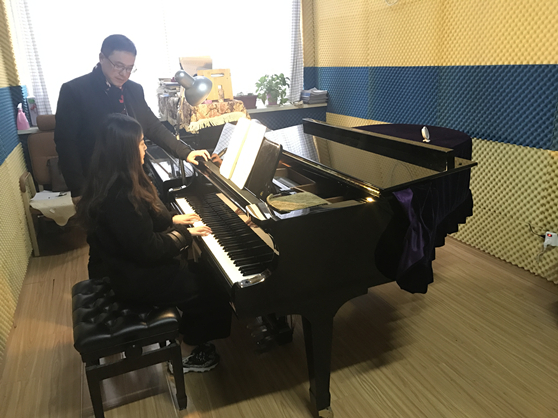 音乐教育学院钢琴课教师正在耐心教导学生