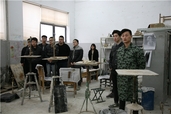 美术学院雕塑课堂学生们认真听老师授课