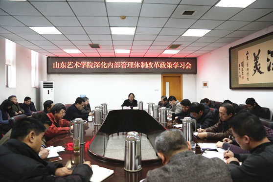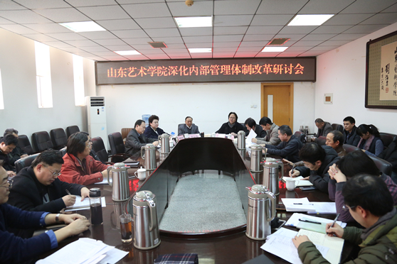 1月12日,山东艺术学院深化内部管理体制改革政策学习和研讨会在文东校区综合楼二楼会议室召开,党委书记李宗伟,院长王力克,副院长刘晓静、高启光,纪委书记兰绍彤出席,会议由王力克主持。