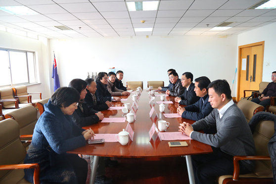 1月16日上午,成武县县委书记崔学民,县委副书记、县长黄福常一行五人来我校进行考察交流。学校在文东校区综合楼四楼会议室召开座谈会。学校党委书记李宗伟出席并主持座谈会,院长王力克、副院长高启光参加座谈会。