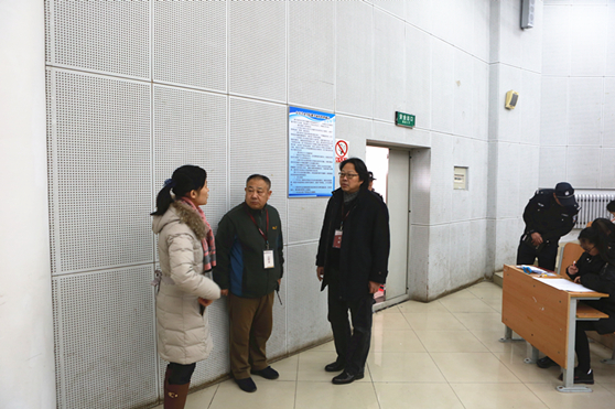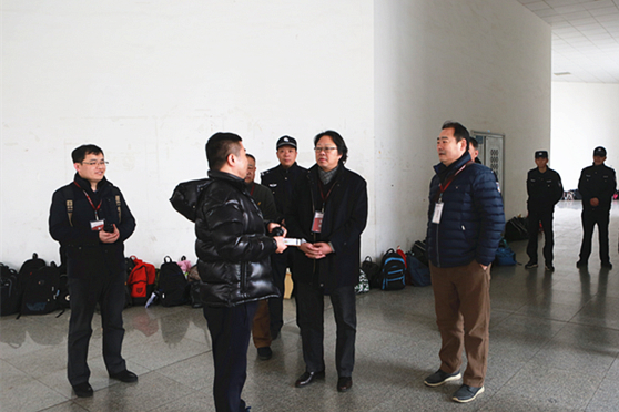 在传媒学院笔试考场,王力克认真检查了各考场秩序和考生答题情况,向监考人员详细询问各专业的考试情况、考场的暖气热不热等,实地查看了解考务组织工作,并亲切慰问了考务工作人员和学生服务人员,勉励大家克服疲劳、精心工作,圆满完成任务。