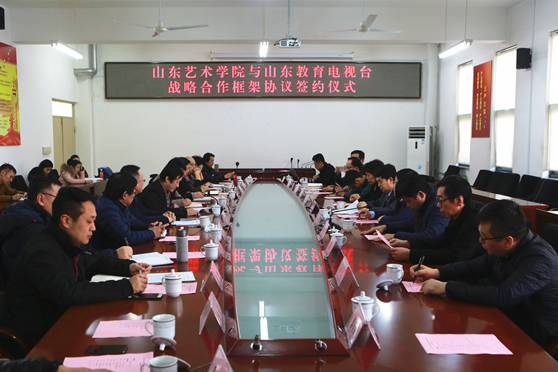 12月23日下午,山东艺术学院与山东教育电视台战略合作框架协议签约仪式在我校长清校区办公楼2楼会议室举行。 山东省教育厅体卫艺处处长孙乐为,山东教育电视台台长邢顺峰、副台长李雪湘、频道总监刘涛等一行出席签约仪式。我校副院长高启光出席会议并致辞。会议由艺术实践与创作处负责人主持。