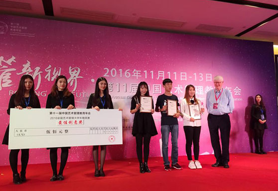 为促进艺术管理专业学生的全面发展,推动不同院校间艺术管理专业学生的深度沟通和跨界协作,此次年会特别策划了《最佳拍档——全国艺术管理大学生精英赛》。比赛分三轮进行,选手在11月10日现场抽签决定分组和题目,每队三人,参赛团队要在48小时内完成创意方案,并于11月12日晚进行团队英文展示、才艺展示、创意展示、方案展示以及现场问答。在比赛中,艺术管理学院学生获得最佳团队协作奖、最佳创意奖、最佳人气团队奖、CAAEA最具潜力奖,包揽了5个奖项中的4项大奖,并获得每人200欧元的奖学金、500元人民币的团队项目基金以及中国艺术管理教育学会提供的免试留学资格。