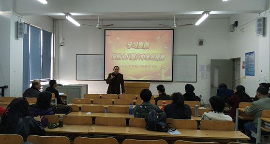 11月3日下午,根据学校党委的部署,为全面准确掌握十八届六中全会精神,扎实抓好贯彻落实,深入推进“两学一做”学习教育,中等教育学院党总支在公共课十八教室召开了传达学习贯彻党的十八届六中全会精神大会。学校党建督导联络员、纪委副书记兼纪委办公室主任尚新宇同志到会督导。中等教育学院全体教职工参加大会。大会由党总支书记胡少力主持。