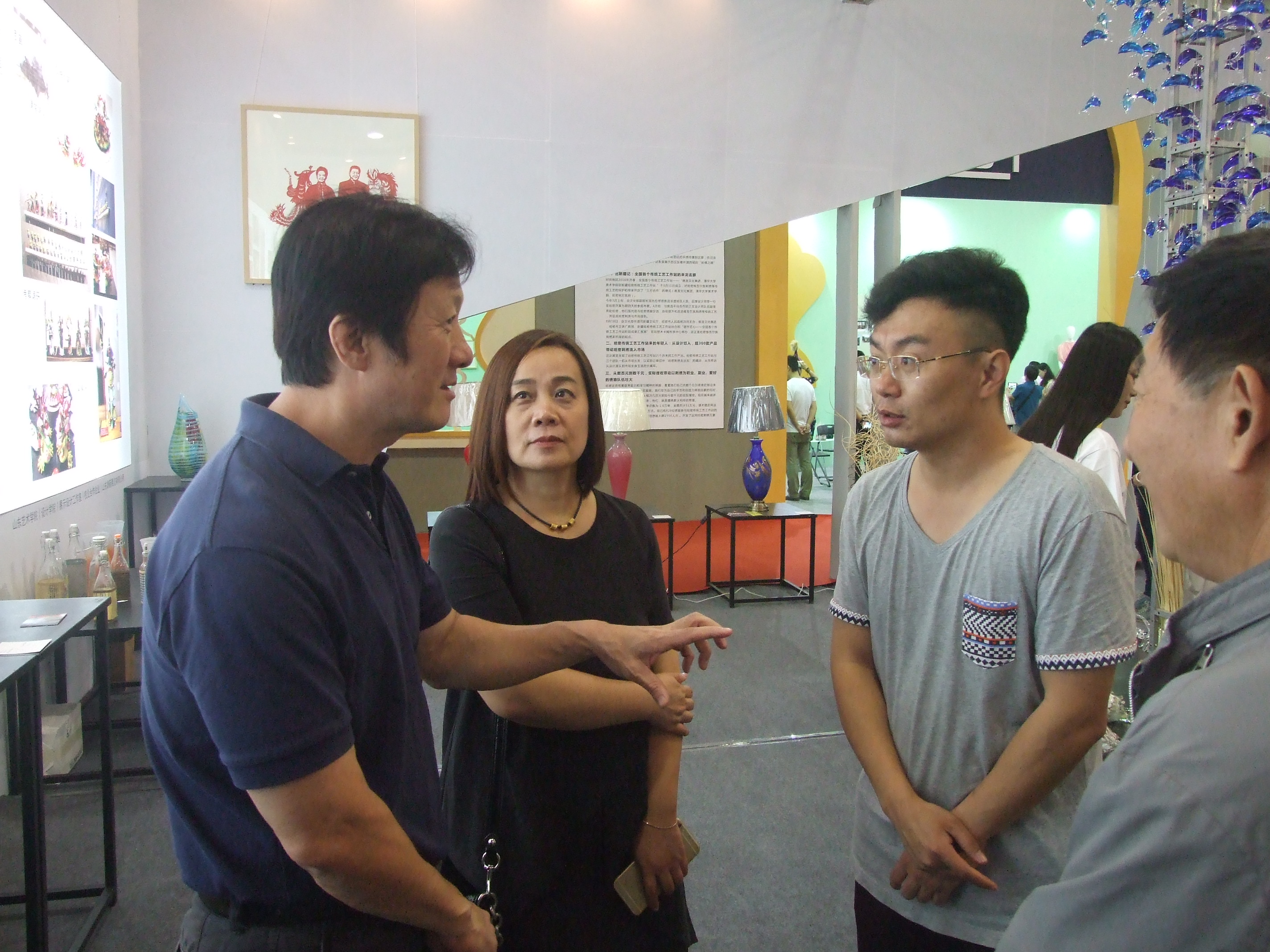 山东艺术学院副院长高启光同布展工作人员交流