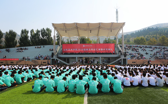 9月26日上午,山东艺术学院2016级新生军训汇报暨开学典礼在长清校区体育场举行。院长张志民、党委副书记王力克、副院长刘晓静、纪委书记兰绍彤、承训部队领导吕越等出席。大会由刘晓静主持。