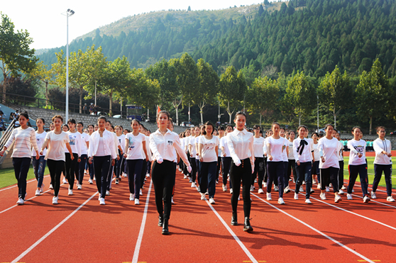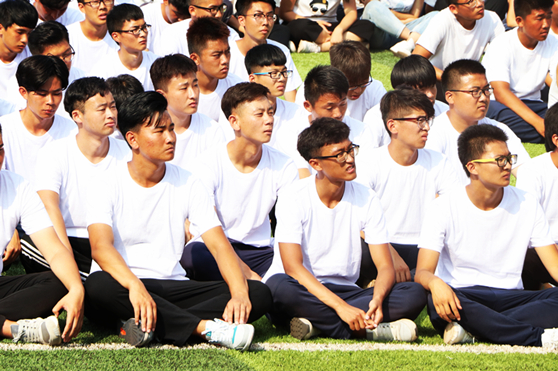 同学们气势昂扬等待检阅