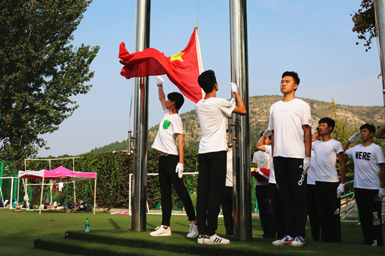 在全场观众的注目礼下升起鲜艳的五星红旗