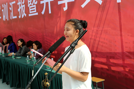 教师代表王涛、新生代表马贝贝分别在开学典礼上发言。