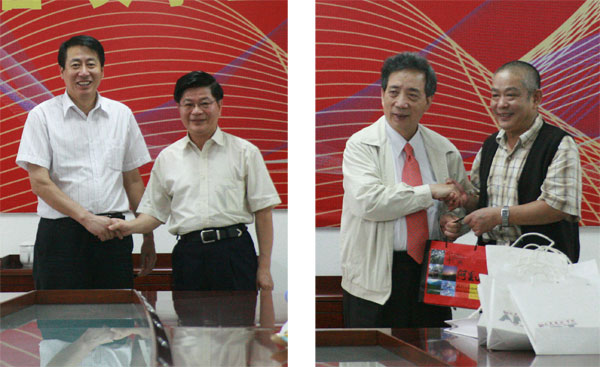 9月7日,台湾艺术大学黄光男校长率代表团一行8人来我校访问。上午9:30,校党委书记柳文敏、院长张志民在长清校区办公楼二楼会议室会见了黄光男校长一行,院长办公室、人事处、财务处、艺术研究所、港澳台事务办公室的相关负责人参加了会见。