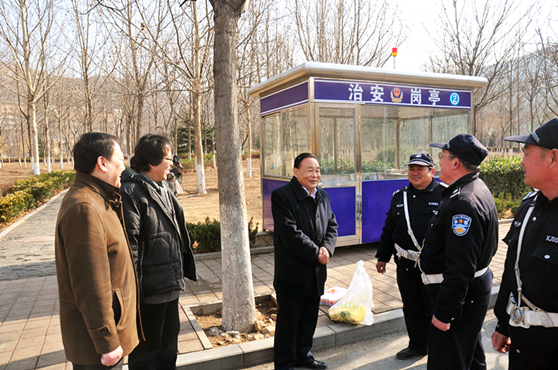 2月18日上午,学校领导首先在文东校区走访慰问了保健科卫生室、物业管理中心、学生公寓及校门值勤室等部门,了解学校安全保卫、供电供暖、医疗保障等工作运行情况。随后,又赴长清校区走访了办公楼值班室,学生公寓、校内治安岗亭、校门值勤室等地方看望一线值班人员。