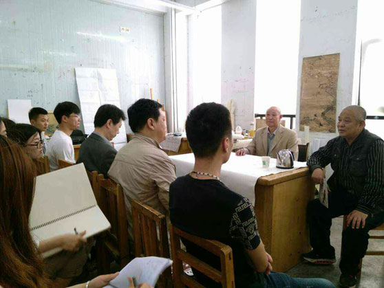 讲座中,崔培鲁先生就花鸟画的学习、创作以及师承关系等问题谈了自己的体会,并挥毫泼墨做了示范,将现场创作的《墨牡丹》、《葡萄》捐赠给美术学院。