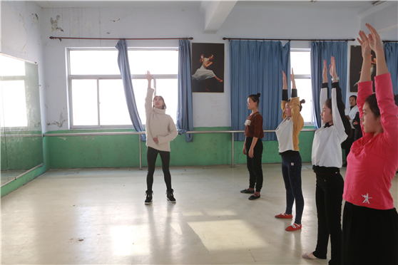 研究生孙颖就舞蹈基本功训练与学生进行交流