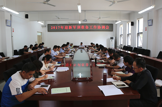 9月1日,学校在长清校区办公楼二楼会议室召开2017年迎新军训准备工作协调会。校党委副书记孔祥华主持会议并讲话。党办院办、宣传部、教务处、研究生处、后勤管理处、财务处、保卫处、图书馆、信息中心等有关职能部门负责人,各二级学院党总支副书记,学生处、团委全体干部参加会议。