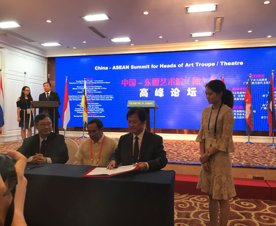 9月6日至12日,由南宁市政府、广西文化厅主办的第五届中国——东盟(南宁)戏剧周活动在南宁市举行。我校副校长高启光、戏曲学院院长王文清应邀参加。期间,高启光代表学校出席了中国——东盟艺术院(团)长高峰论坛,签署了《中国—东盟戏剧合作交流机制谅解备忘录》,并在召开的圆桌会议上,就学校的办学优势、戏剧的发展传播、建立中国——东盟戏剧合作交流机制作了主题发言。在中国——东盟(南宁)戏剧周国际学术研讨会上,王文清作了题为《建立中国——东盟戏剧发展命运共同体是历史和时代发展的必然要求》的发言。我校代表的发言赢得与会人员的一致好评。