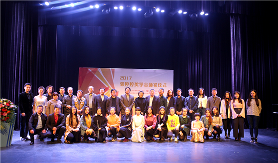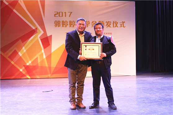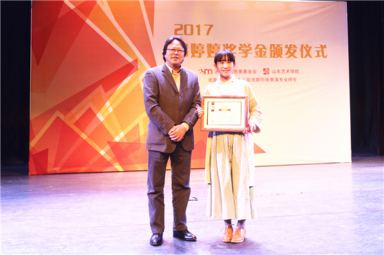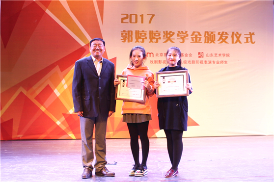 10月20日,2017年度山东艺术学院郭婷婷奖学金颁奖仪式在长清校区戏剧影视学院圆形剧场隆重举行。校长王力克,党委副书记孔祥华,北京时代影响力影业创始人及董事长、北京易明慈善基金会创办人及理事长郭婷婷女士,奖学金评审委员会主席、戏剧影视学院教授孙德成及来自校内外的评审专家,获奖学生,校内各二级学院党总支书记、副书记、教学副院长、团总支书记、辅导员、教师、学生代表,相关部门负责人参加了颁奖仪式。